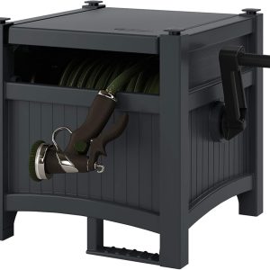 Introducing the Suncast Garden Hose Reel Hideaway – the perfect solution for keeping your garden hose neatly stored and out of sight! This innovative hose reel is designed to accommodate 5/8″ hoses and has a retracting storage capacity of up to 100 feet, making it ideal for medium to large-sized gardens. Crafted in a sleek…